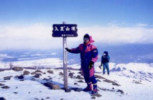 頂上は午前中よりも多くの登山者を迎えていた。マナスル山荘へ下りはじめは、急斜