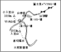 麦草峠でシールはずして雨池へ向かうが、林道まで緩い登りが多く(イラストマップには逆
