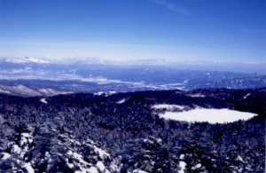 右に大きな蓼科山,左に八子ヶ峰,車山,そして遠く北アルプス
