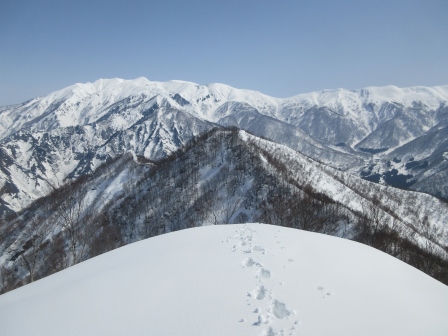 無黒山では巻機〜朝日方面の真っ白な稜線が印象的