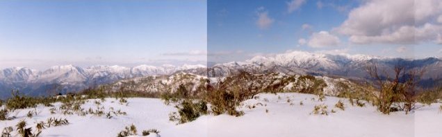 雪の無い頂上は小広い平地で、そこには低山にしては思わぬ大展望が広がっていた。