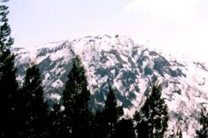 Oさんも帰京し、私一人でもう少し登りたい山を巡ることにする。登山口への林道は標識が少なくてわかりにくい。一昨年この地を訪れ、昨日も偵察したにもかかわらず、田向の集落から湯谷川を渡る新しい大きな橋や工事の影響で迷わされた。バスジャック事件のニュースを聞きながら、中根山荘まで車で入った。先着の5人グループが出発の準備中。積雪状態からいってスキーにはやや遅いと見て歩きで行くことにした。