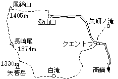 東郷(6:08)=駐車場(7:18/7:38)…登山口(8:40)…尾鈴山(10:17/10:40)…矢筈岳(12:00/12:10)