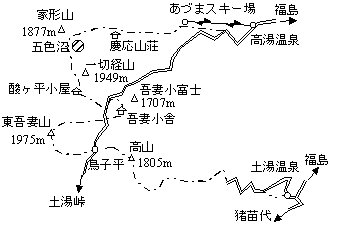今年も1回は参加したいと、東吾妻山ピークハントを兼ねてこのコースを申し込んだ。吾妻連峰へ