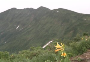 大岳付近の草原ではニッコウキスゲやコバイケイソウなどお花畑が楽しめた。
