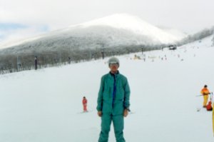 ま滑降,もう山スキーでゲレンデ滑ってもしょうがないし,スノーボード借りて練習す