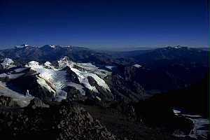 ゴルドン・ペニテンテス方面。セロ・キュプラ(5486m),セロ・マノ(5426m),