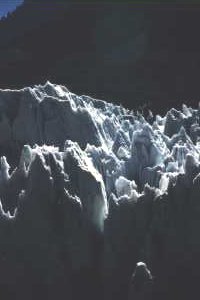 後急降下すると、氷の峻塔が無数に立ち並ぶ舌端部に下り着く。何組かのパーティーが