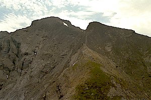 ケルンのピークから望む山頂。穂高の一般コースを登る様な岩山。