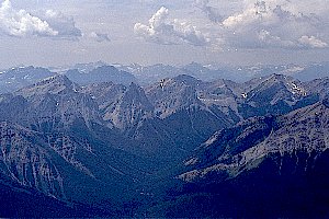| ロッキーの山なみが延々と続いている。 |