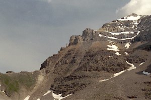 Sentinel Passへの登路から見た Mt.Temple登山ルート。稜線の左端がSentinel Pass。