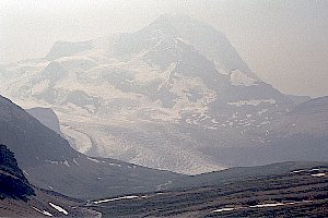 Snowbird Passより見たMt.Robson。Smokeyなのが残念だったが、Robson Gracier上にそびえる姿は迫力がある。