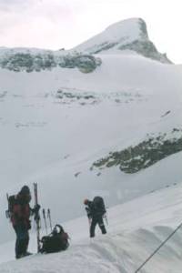 6年前の夏のカナディアンロッキーの景観が忘れられず、ぜひスキーにも言ってみたいと思っていました。E社のプランに永年勤続休暇を利用して参加。ヨーロッパのオートルートにも列び称される、カナディアンロッキーの代表的スキーツアーコースです。転勤の引越し直後という忙しい状況でしたが何とか準備して行ってきました。天候はいまひとつパッとせず、ホワイトアウト状態にも見舞われましたが、無事予定のコースをスキー走破できました。アイスフィールドの岩峰を横目に滑る醍醐味は日本ではちょっと味わえないものでした。
