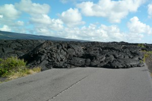 溶岩流が道路に達した跡