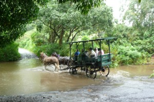 増水した川を渡る馬車ツアー