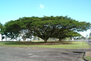この後はヒロの町に出て、レインボー滝・アカカ滝や市街の様子を見物。雨が多い所なので、市街地は緑が鮮やか。樹木も良く育つのか、公園には大きく傘の形に枝を張った日立のモンキー・ポッドなど巨大な樹木が多い。ハワイの中でも特に日系人の影響が濃厚な町。レトロなレストランやマーケット、お惣菜屋などリゾート地より断然物価が安くて住み易そう。