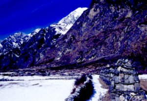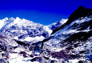 正にランタン谷トレッキング核心部に来たという感じだ。左にはギザギザしたキムシュン(6745m)、